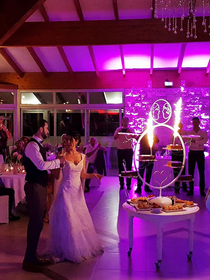 Nous pouvons également créer des effets scéniques spectaculaires pour votre entrée en salle, l'arrivée du gâteau ou l'ouverture du bal, avec des  jets de scène en machine à jet d'étincelles froides et une machine à fumée lourde pour un effet mémorable.